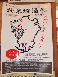 今年も張り切ってます 第二回 純米燗酒祭 ~九州場所~詳細が決定しました当店にはポスターが貼られチケットの販売も致しますどうぞたくさんの参加をお待ちしております 日時 2011・10・10(月) 17:00~ 場所 ホテルオークラ福岡 会費 10000円 前売りチケットのみ昨年より日本酒蔵元の数も増えお料理も充実純米酒のお燗が冴えわたる味を十分にお楽しみいただけます蔵元さんとの会話ありの楽しいひととき美味しい燗酒に酔いしれましょうおいしい燗のつけ方やお酒の適温などしっかりと聞きましょうね