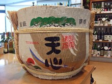 目出度い席での鏡割りと言えば日本酒の鏡割のこと「天心」の菰樽を頂きました杉樽(先日の樽酒のときの写真)にお化粧したもの立派な天心の名入りの菰ですお祝いにふさわしい絵柄は昔からのもの今でもお目出度い席に使用するため依頼があるそうです身近では結婚式の披露宴で鏡割りを行う方もいらっしゃるようです樽を割ってみなさんでおいしい樽酒を頂き祝福の乾杯となると嬉しいですね天心の菰樽、店内に飾っていますご覧くださいね