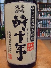 十年 一昔の芋焼酎が蔵出しされ本日堂々入荷毎年の恒例となった一月の貴重な芋焼酎 酔十年(すいとうねん)平成13年仕込まれた芋焼酎「さつま諸白」を十年間じっくりと熟成貯蔵実に芳醇な香りとまろやかな深みのある味わいになりました鹿児島酒造 黒瀬安光総杜氏の管理のもと秘蔵のタンクから瓶詰め永い眠りから目覚め新たな息吹で蘇った味わいは想い出を語りながら味わうにふさわしい焼酎です 酔十年 25度 1.8L 4200円 無和水37度 1.8L 6720円