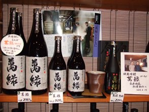 店内の真中にド~ンと構える 「萬緑」尾池店長絶賛の焼酎です先日の勉強会でさらに惚れ込みました「焼酎と言えば まずは『萬緑』 これしかないよっ!! この香り、この旨さ 天下一品! なにより造り手の松本杜氏が いい男なんだよね~ 男でも惚れ溺れするよ。」まさにその通り!!ツーショットの写真がお出迎え『萬緑』コーナーにお越しくださいね