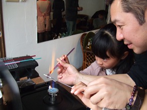 明日2月17日は2月お酒を楽しむ会で~すお酒だけではありませんよ~お酒を楽しむ前に 『とんぼ玉ストラップ作り』 にチャレンジします北九州市八幡西区の 『がらす工房 大喜』平岡先生の指導によりガラスを溶かしとんぼ玉から作ります紐を通してハイっ、ストラップが出来上がり!!自分だけのお好みのストラップが完成~その後はお酒タイム搾りたての新酒を平岡先生とともに楽しみますとにかく「とんぼ玉」体験は初めてのこと看板娘も一番に手を上げて作ってみたいと思います今からバリバリ張り切っていますよ~楽しみ 楽しみ