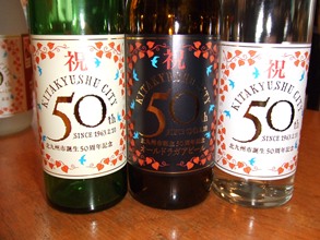 北九州市誕生50周年記念酒が発売になります1963年(昭和38年)2月10日に門司市、小倉市、戸畑市、八幡市、若松市の五市が合併して北九州市になりました50周年を迎え北九州市内にある三つの醸造所が協力して記念酒を2月10日より発売八幡東区 溝上酒造の地酒小倉南区 無法松酒蔵の粕取焼酎門司区 門司港レトロビール オールドラガアビールステキな50周年の記念ラベルでデビュー左から ★清酒 720ml 1680円 300ml 735円 ★地ビール 330ml 525円 ★粕取焼酎 720ml 1470円 300ml 630円記念酒を飲んで50周年を盛り上げましょうね!ちなみに尾池店長は4歳だったそうです(笑)生まれも育ちも現場所50年前はどうだったかな~???