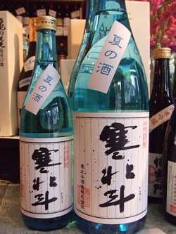 寒北斗」が鮮やかな水色ボトルで登場~福岡銘酒「寒北斗」夏の酒としてデビューしましたいつものグリーンボトルのイメージからぱぁ~っと目を引く涼しげなボトルにもちろんお酒は、夏用に特別に仕込んだ純米酒ゆっくりじっくり低温発酵させたため香り良い後味のキレの良い夏向きに仕上がっていますほんの少しアルコール度数も軽め(14.3度)口当たり軽く少し辛めの味わいです夏に向かって「寒北斗 純米酒 夏の酒」が大ブレイクしそうですよ!! 寒北斗 純米酒 夏の酒 1.8L 2700円 720ml 1350円 お問い合わせは 尾池酒店 093-881-2138