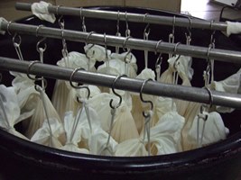 「北九州の地酒 夢天心」の搾りが昨日行われました年の瀬の慌ただしい中尾池店長、わずかな時間ですが搾りに行ってきました~店から車で15分地元ならではの便利さです!蔵に到着するともろみを酒袋に入れ自然の力で垂れてくる雫搾りが始まっていました夢天心の吟醸香につつまれシトシトと斗瓶に詰められていきます今年は早めに造りを開始夢天心も順調に出来上がりました斗瓶とりからしばらく落ち着かせて瓶詰め、出荷となります来年には「北九州の地酒 夢天心」の新酒にお目にかかれますよ乞うご期待~ もろみを酒袋に入れて吊るしています 尾池店長、ニッコリ!! 真剣な表情の溝上杜氏尾池酒店、明日大晦日も通常どおりの営業です後1日、頑張ります!!新年は5日(月)から営業致します。