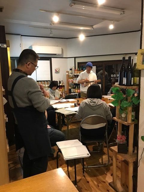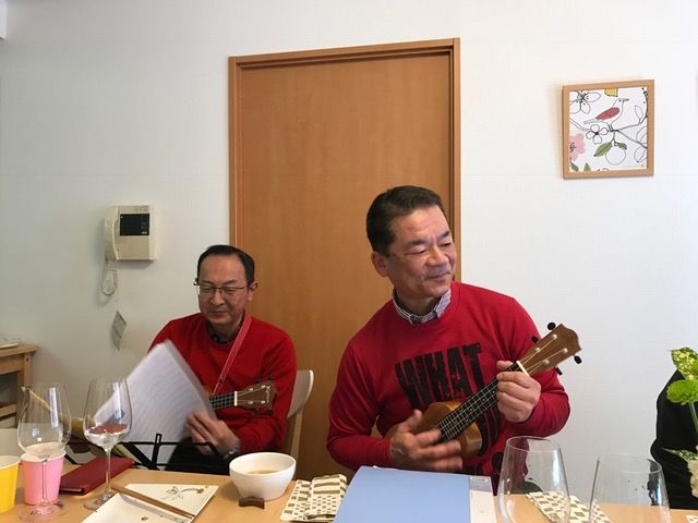 昨夜は今年1回目のウクレレ教室でした2ヶ月ぶりのレッスンとあって皆様張り切ってお越しになりましたと言うのも来月17日には戸畑にある「マリポサキッチン」さんで1周年記念イベントでウクレレ演奏をすることに🎶シェフと奥様のハワイ好きからアロハデーのランチタイム!ハワイアンのウクレレ演奏にフラダンスチームも参加楽しいイベントになりますウクレレ演奏とフラダンスチームの音合わせ尾池酒店店内はハワイアンとフラダンスで常夏気分熱心に練習しバッチリの仕上がりとなりました当日はハワイアン尾池店長もアロハシャツ着て演奏ランチタイムのお飲み物は尾池酒店が担当美味しいワインをご用意いたします頑張らなくっちゃ~