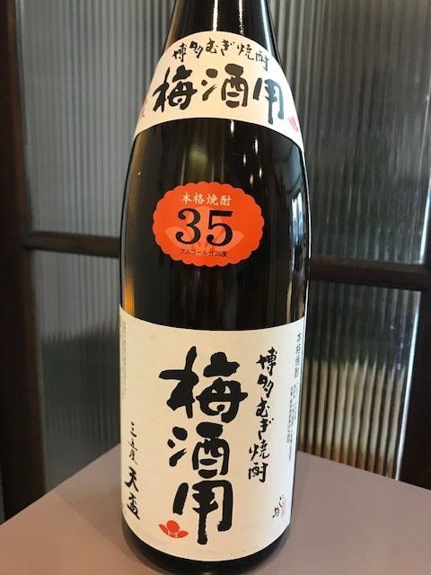 青い梅が出回ってきました梅を見ると「今年は梅酒を作ろうかな」「梅ジャムが造りたいな」「梅干をつけてみようか」と色々頭に浮かびます美味しい梅酒を作りたい方には尾池酒店おすすめ天盃 梅酒用35度造り方はいたって簡単青梅のへたをとり、洗い一晩水につけ翌朝しっかりと梅の水気を切りますデキャンタ瓶に青梅、砂糖を入れて天盃梅酒用を注ぐだけハイ、完了後はジッと待つだけ青梅1㎏ グラニュー糖 500g 量はもう少し足して甘さを調整してください 最大1kgまで天盃梅酒用 1.8L 1本1年経過すると飲めますが長く置いてまろやかさとコクがでてくるのが天盃梅酒用の特徴梅はしぼむことなくそのまんまの形なので食べると美味しいですよ「あらッ、簡単ですね」毎年梅酒を作る方にも大評判です今年は天盃梅酒用を使って梅酒にトライしてね天盃梅酒用 1,8L 2700円税込尾池酒店 093-881-2138