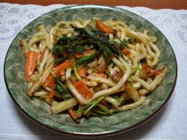 今夜は、 「モンゴルだれ焼きうどん」  を作りました。
