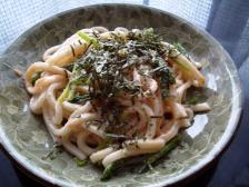 うどんを茹でてからめたのですが、パスタのようにツルッとした食感は得られず、
