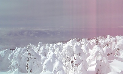 最近めっぽう春っぽい。気候が春っぽい。でも、春にしては景色が寂しい。やっぱ冬なんだなと思う。異常気候。この前蔵王にスノボ行って山頂に行ってきた。すっげーいい天気だったから友達とこりゃ上行くしかねーべ!!!!!!!って事になり^^何度か山頂に行ったことあったけど大荒れで激寒でまともに樹氷とか景色なんて楽しめなかったんだけど、今回はめたんこいい天気♪すっげー綺麗な景色&樹氷みれるんだろうなとワクワクして行った。確かに天気最高だったため、遠くの山まで見えて、下界も綺麗に見えてめたんこ感動☆ただ、樹氷が残念な事に。。痩せすぎ。緑が見えちゃってたし、、何より山頂に着いた時暖かかったもの。お地蔵さんは相変わらず胸まで雪に埋ってたけど、、樹氷はちょっとがっかりしちゃった。