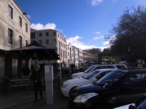ホバートの湾から 町の中に垂直に坂を行くとエリザベスストリートがある