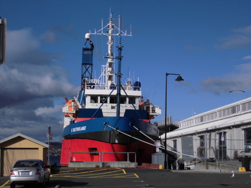 オーストラリアの南極船は 全身オレンジ色をした存在感のある船だ
