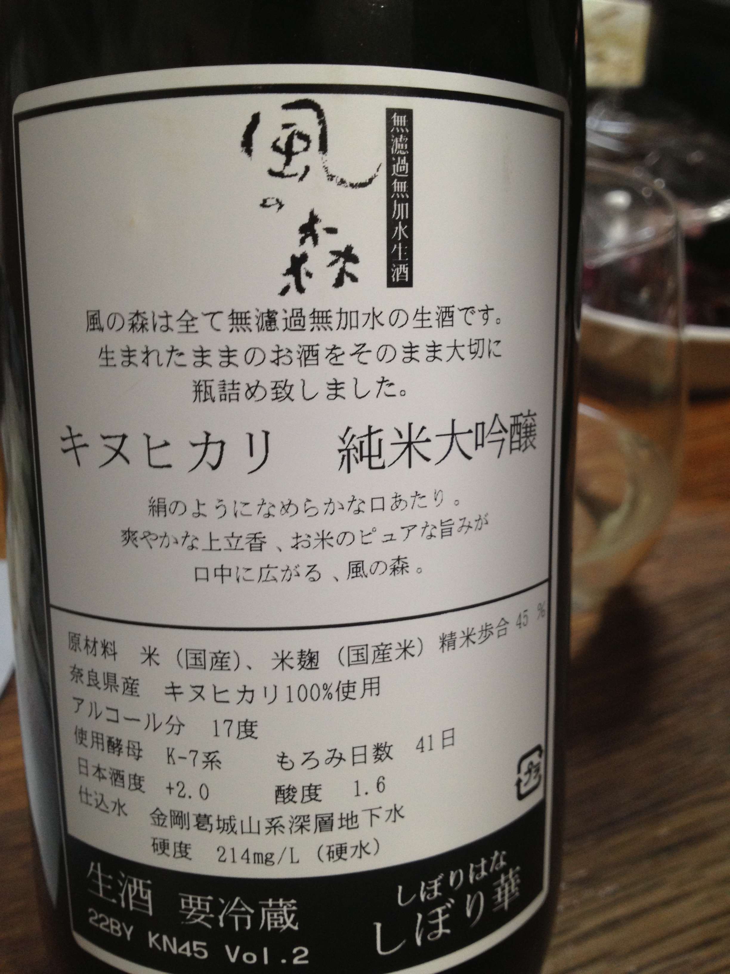 風の森 「純米大吟醸しぼり華」無濾過無加水生原酒キヌヒカリ 1800ml平成24年度醸造新酒 価格:2,940円(税込、送料別)