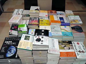 最初に店長にご挨拶したときに、とても好意的に応対していただきました。すでに平積みはしていただいていたのですが、冊数も少なく配置場所も店頭ではありませんでした。日をおいて確認したところ、写真のように2列にとても目立つところに平積みしていただいていました!感謝!
