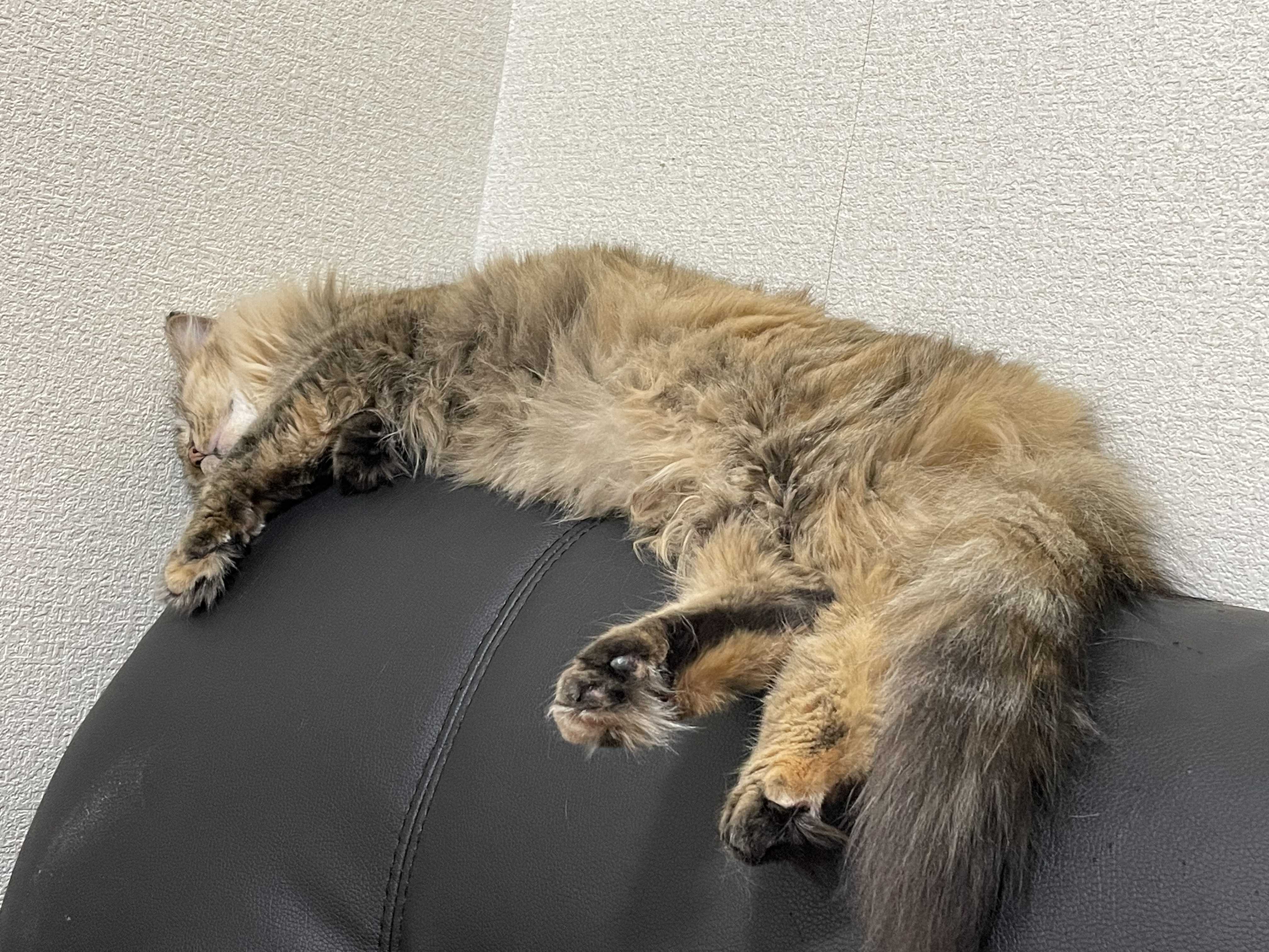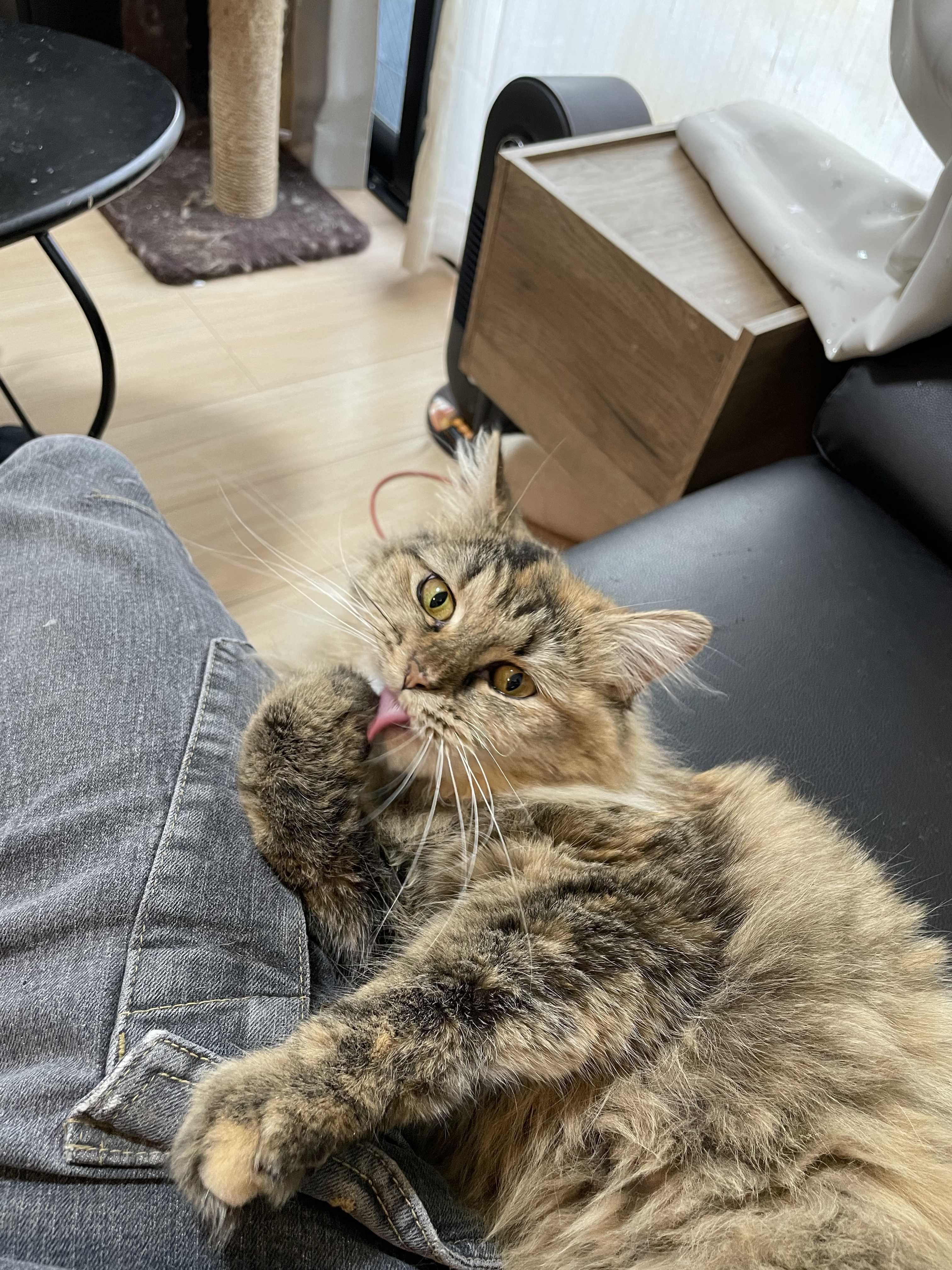 仕事から帰って来てソファに横になると必ずここに来るんですが今日は珍しく隙間に頭が挟まってた🤣