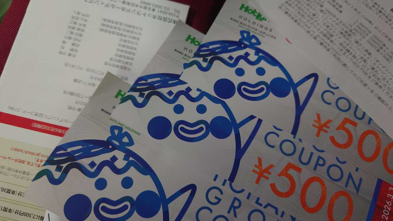 たこ焼きやたい焼きのようなホットスナックが中心のホットランドから株主優待券が届きました、アメリカでの好調などもあり株価は堅調ですがこれは続くのかな?なお、一部では食堂もありカレーライスを提供したりもしています。まあまあ美味しい