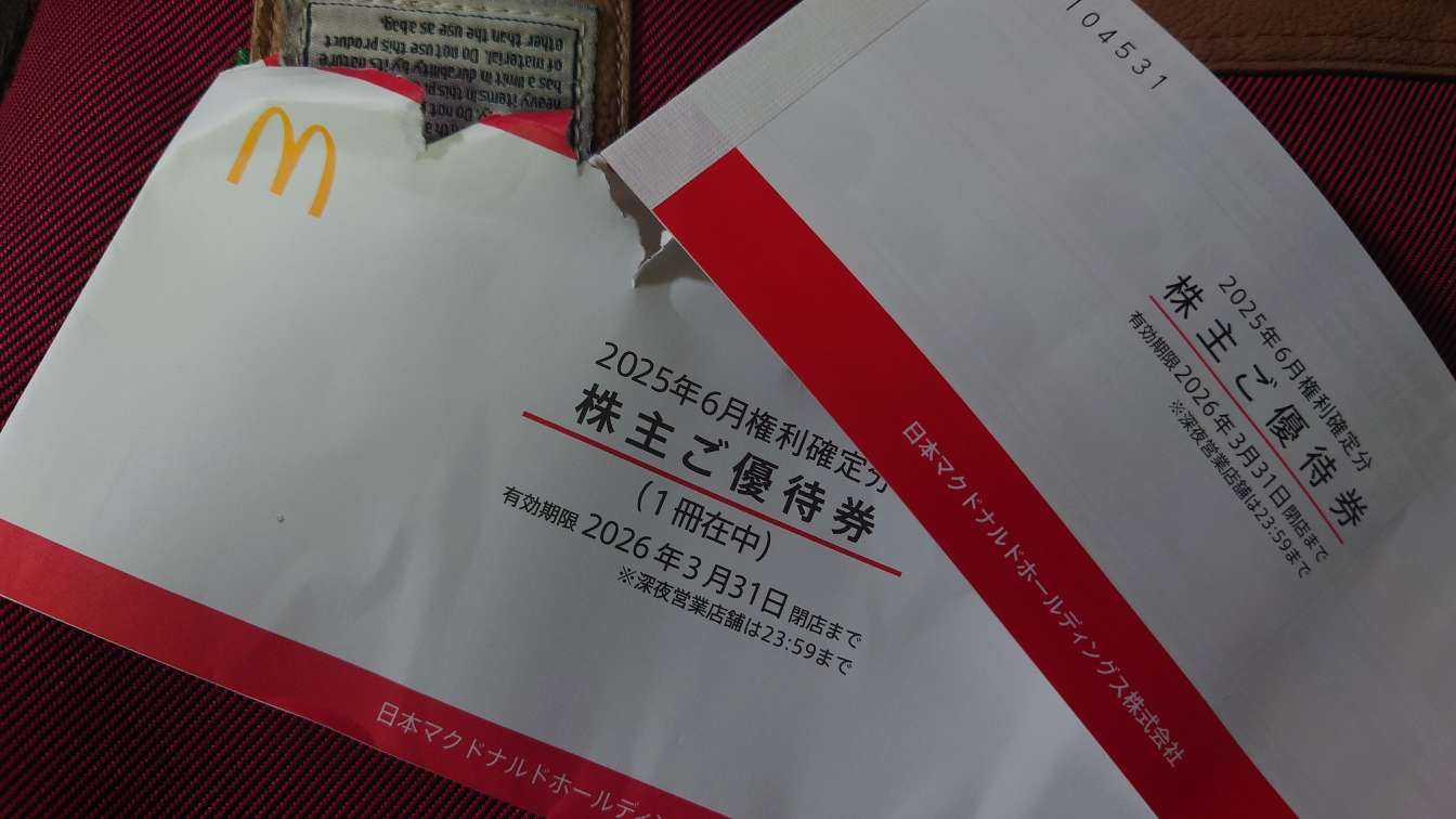 マクドナルドの株主優待券到着。これがあるおかげでマクドナルド通いが止まらないというね。コラボ関連のフードロス問題も解決してくれるといいけど望み薄かなあ。まあ、変わらなければ次の株主総会は行ってみようかな