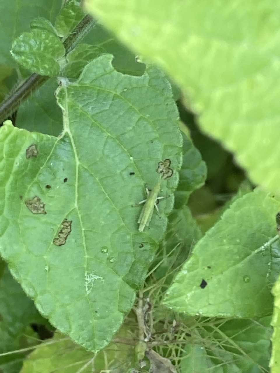 今年生まれたバッタの初オンブ。 August 22, 2025