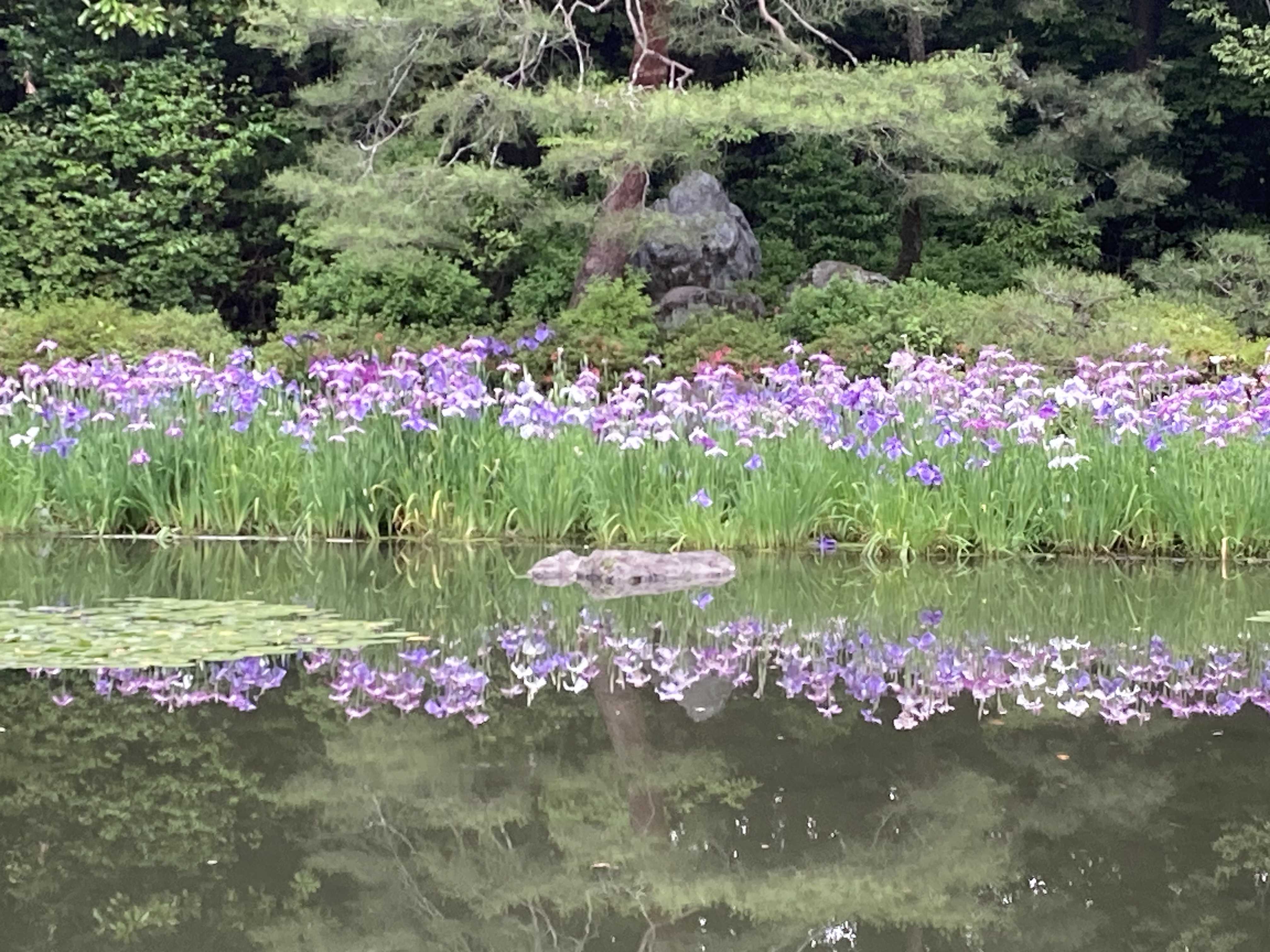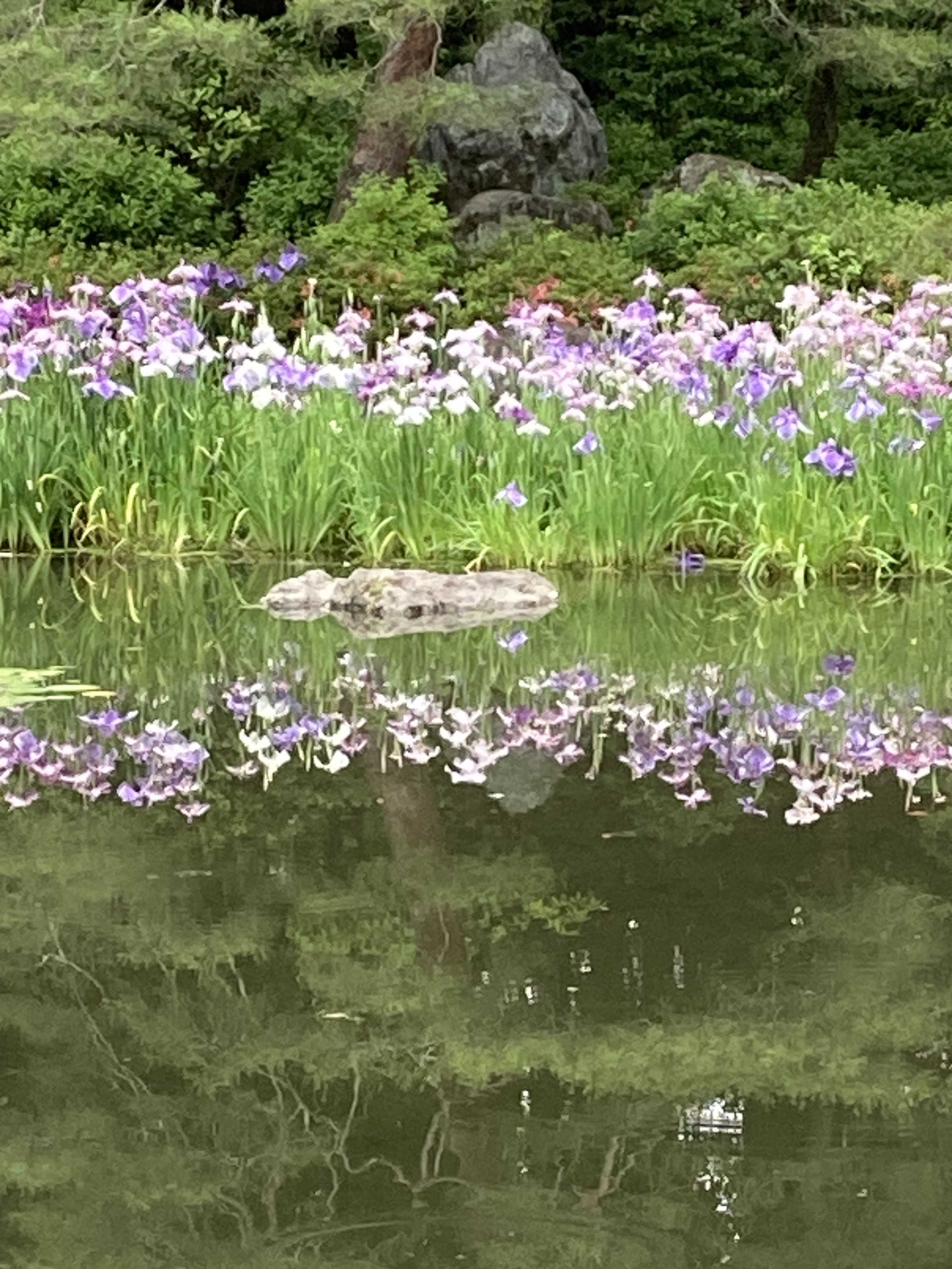 水面にうつる花菖蒲が