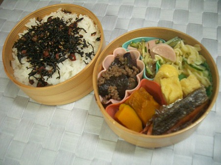 こんばんは~。外はすごい雨いつまで降るのかな。。。今日のお弁当です。CIMG4128 posted by (C)ティラ★なすびとひき肉の甘辛煮★くらげ、きゅうり、ハムの中華風サラダ★マカロニサラダ★鮭★卵焼き★かぼちゃ★ご飯with梅ひじきでした。鮭は昨日の夕食が鮭のホイル焼きだったので、お弁当用に少し鮭を取っておいて、塩をふって焼きました。ではまた~*sae*