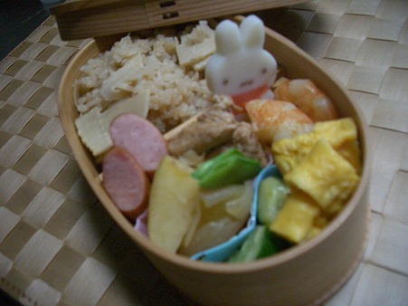 こんばんは明日から連休ですね~。今週はあっという間だったなぁ。さて、今日のお弁当です。CIMG4113 posted by (C)ティラ★筍ご飯(昨日に続きリクエスト~)★ウィンナー★肉じゃが★キュウリと塩昆布のごま油和え★卵焼き★海老の香草焼き★Miffyかまぼこでした夫は筍ご飯が気に入ったらしく、リクエストが・笑筍美味しいよね~*sae*