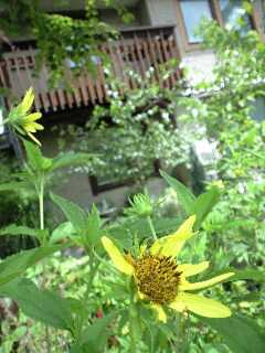 遠くに灰色の曇天。雨雲が近づくかな…と思いながら、庭に立つ。日中より涼しい空気と鳥の囀り。蜂がどこに巣を作ろうかと探している、雨の降る前に。あっ、もうこんなに雑草が…!いつもの営みがそこにある有難さを感じる、金曜日の朝。株立ちのカツラの根元のあたりの雰囲気が今、気に入っています。木漏れ日と草花の素朴な咲き具合に癒されます。ほとんど零れ種で増えたもの♪エキナセアイトバハルシャギク&ベルガモットペルシカリア?緑の猛勢に、赤色を添えて。枕木に添って赤色の「サルビア」を。母は、夏になると、赤いサルビアを植えたがります。夏休みの旅行で出掛けた蓼科や八ヶ岳や軽井沢などの風景を思い出すからみたい。赤い「ケイトウ」赤い「ベコニア」赤色の配分で、母とは毎年揉めるのですが…今年は多めになっています。≪今週末の焼き上がりマフィン≫猛暑のため、お休み予定です≪季節の焼菓子≫檸檬のパウンドケーキ~バニラアイス添え~≪季節のフレーバーティー≫NEW♪白桃緑茶orラベンダーの香り≪季節のハーブティー≫レイニーブルーブルーの色味が、涼感を誘い好評です♪OPEN10:30~CLOSE18:00(LO17:15)7月がはじまりましたね。このひと月も、皆様にとって健やかでありますように。
