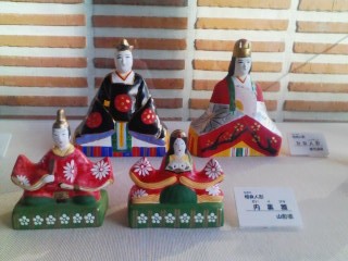 今日はヨシノめがねさんでのビーズレッスンでした。本日の作品はこちらでした。 木曜日の煉瓦館でのレッスンも同じ作品でしたが、思いのほかハートのモチーフが難しく皆さん苦労されてました。すべてスワロできらきらハートにしたいところですが目印になるものが無いと大変ですので、2種類のビーズを使用してます。それでも難しかったみたい・・・。せっかく苦労されて作った作品ですので、ぜひ素敵にお洋服とコーディネートさせてアクセサリーを引き立てて欲しいな~と思っていたらちょうど今日の作品にぴったり合うお洋服の従業員さんがいらっしゃいましてお客様の状況を見て、モデルになっていただきましたスタイル抜群、美貌の持ち主のMさん。ありがとうございました。そのまま、そのアクセサリーもお求めください、重ね重ねありがとうございます。サンプル品ですと、材料費のお値段でお譲りで来ます。数に限りがございますので、早い者勝ちです。ブログをご覧いただいてる方でも、定形外郵便で郵送も可能です。ぞうぞお気軽にお尋ねくださいね。大変遅くなりましたが、めがねチェーンも売れ筋商品が仕上がりました。近いうちに店頭に並ぶと思いますので、よろしくお願いします。そして、店頭にはお雛様が飾られてます。 今からちょうど50年前、昭和34年のお雛様を泉佐野本店の店内1階にお飾りしています。いまではめずらしいお内裏様が御殿に入った五段飾り。むかしは「ひなかざり」などと言いましたね。お顔がいかにもお人形、かわいいです。威厳があるはずの右大臣・左大臣までもが、カワイイんですよ。御殿はプラスチックなどは一切使っていない全木製、手塗り。職人の手仕事は見応えがあります。写真にもちらっと見える、官女が手にしている三宝も薄板金の手細工なんです。いまなら当然プラスチックの成型でしょう。ついでにいいますと、五段の脚も当時のもの、モノづくりの考え方が分かります。倉庫に眠っていて27年ぶりにお出まし願いました。ぜひ見てあげてくださいね。 ↑ ヨシノメガネさまのHPから引用させていただいてます。4月3日まで店頭に飾られてますよ