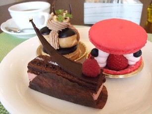 本日は紅茶出張レッスンでした。あんなに暑い日が続いていたのに、今週はどういうわけか気温が低い日が続いておりますアイスティーのレッスンでしたので、お腹の調子が悪くなってもいけませんので「ティータイムの紅茶は遠慮なさらず残してくださいね。」と申し上げましたが、グラスを今回からフルートグラスに買い換え、小さめになりましたので、数種類のアレンジティーも楽しんでいただけたようです。アレンジティーは特別な物も必要なく、みなさんがいつも目にしているようなものでお洒落におもてなしが出来るのでは??と思いますので、家族の方やお客様に喜んでいただけたら・・・と思います。4名様以上でしたら、出張レッスンいたしますのでお気軽にご相談ください。レッスン後、昼食を兼ねて近くのホテルのティールームでケーキバイキングを楽しんできました。はい、お一人様ですお友達と出かけるのも好きなのですが、こちらでは毎週金曜日14:30~17:00までの90分と限定されていますし、いつまで開催しているのか??分かりませんので気になる事はチャンスがあるときに実行ですでも現地に行くとお一人様は、私一人じゃないことが多いの慣れてしまうと全然平気ですよ。15種類ぐらいのケーキから「3個までどうぞ。」と言われこちらを選びました。手前のチョコケーキは美味しかった。マカロンケーキはかなり大きかったけど、マカロン独特の食感がたまりません。シュークリームのケーキあたりから苦しく~~~~(当たりまえやろ!!)お皿のケーキが無くなる頃、次のケーキを勧めてくれますが、40代半ばを過ぎますと、結構苦しいです。斜め隣のお姉さん(こちらもお一人様)、何個食べてるんやろ??スピード速っ!!お後は、アイスクリームと白ワインのゼリーと、少し軽めなものを選びお一人平均個数(スタッフの方にお聞きするとお一人さま、4~5個だそうです)を制覇しました。 来週土曜日『マダム☆YUKA』の会で、Le・Tablier Keiさんで教えていただいた「白ワインのゼリー」を手作りしてお持ちしますのでお楽しみに