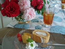 本日は大阪・昭和町で〈パン、ケーキ教室〉をされている『Le・Tablier Kei』さんでアイスティーのレッスンでした。ちょうど梅雨の中休みでお天気にも恵まれ大きな窓から良い風が入ってきて、爽やかな絶好のアイスティー日和でしたリーフティーの美味しい淹れ方(ホットティー)、濁らない綺麗なアイスティーを作るポイントを説明させていただき、数種類のアイスアレンジティーを飲んでいただきました。今回、Keiko先生のお言葉に甘えさせていただき、食器やグラスをお借りしたのですがお料理と同じく、飲み物も器やグラスで、こんなに素敵にお洒落に演出できるのだと、私自身もいいお勉強をさせていただきました。ありがとうございますこちらでも、「紅茶(特にアイスティー)を飲みますと、しんどくなるので遠慮せずに残してくださいね。」と申し上げましたが、今日は暑すぎる事もなく、室内は冷房も入れず自然の風で過ごせたのが良かったのか、みなさん「美味しい!!」とかなりの量のお紅茶を楽しんでくださいました。最後はKeiko先生、お手製のロールケーキやアールグレイの羊羹とシンプルなアイスティーでティータイムを楽しみました テーブル上の素敵な薔薇は、プリザーブドフラワー『Ballerina』さんのお庭のお花です。レッスンの様子を記事にして、紹介してくださってますので是非、ご覧になってくださいね。今日はお忙しい中、参加くださいましたみなさん、ありがとうございました。