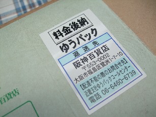 今、ちょっと話題になってます「ゆうパック」で荷物が届きました。直接ご本人様にお届けにあがる、お中元のお品をネットで申し込みしたのですが、用意が出来次第の発送なので、遅れているのか?? どうなのか、よくわかりません。阪神百貨店さん、お仕事が速いですよ同じ日に別の百貨店で、2品同じように注文したものは、まだ届きません。ゆうパックより、そっちがいつ届くのか・・・気になります。