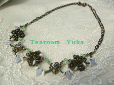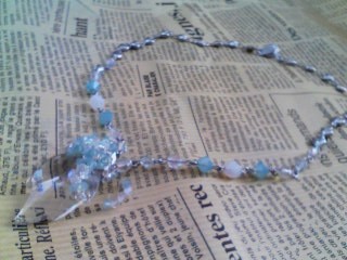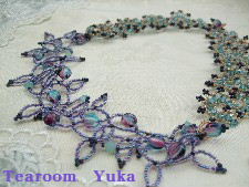 夏らしい涼しげな作品が仕上がりました。ネックレスとして使うのはもちろんですが、今回のこの作品ちょっと面白い使い方が出来るのです。じゃじゃ~んあ~ら、びっくりバラバラにすると、ブレスレットとしても使えますよ。早めに仕上がったので、色違いも作ってみようかと思います。さて、先日のアイスティーのレッスンの様子をkeiko先生がレポートしてくださってます。ありがとうございます