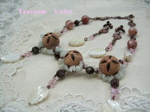 昨日、なんとなくカジュアルな服装を選んだのですが、その服に合うアクセサリーがありません。出かける1時間前に、家のあり合わせパーツをひっくり返し、慌てて作り出しましたが結局間に合わず・・・昨日は残念ながらお披露目できませんでした。スグに完成させてしまわないと、そのままほったらかし状態が長く続く私の性格。と言うことで・・・本日、午前中に仕上げました。こんなん出来ましたけど~~~~。ピンクのさざれ石は、先日、仕上げたビーズ刺繍の鞄に使った残りです。本日のアクセサリーは、残りものパーツで仕上げたので0円ですわ時間があれば、余ったパーツをこんな風に変身させた~~~い。