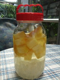今日はABCクラフトさんでの講習会。ベテランさんが多く、手はもちろん動かしながらですが、お喋りも楽しいです毎回、色々な話題が飛び交いますが、今日は「先生~、ウエスト58cmですか~」と、質問されました。そんなわけ無いでしょう~子ども二人産んで、私は超便秘症。食べることが大好きで特に甘いものは欠かせません。(いつもブログを読んでくださってる方、うなづいてますね。)そんな私も、毎日、必ず体重計にのります。一番アカンのは、お酒。そして、夜に食べるお肉。どうしても体重を落とさないといけないときは、夜は白米は食べません。そして、どうも最近はまってるサワードリンクのお砂糖もアカンのかな~。と思い、レシピのお砂糖を半分にしてみました。↓〈パイナップルのサワードリンク〉お勧めです。娘達はレシピ通りの方が美味しい!!と言いますが、私は半量にしたほうがお酢!らしくて好きかな~。今度はもっと減らして、紅茶&オレンジのサワードリンクを仕込みました。さてさて・・・ 楽しみです。