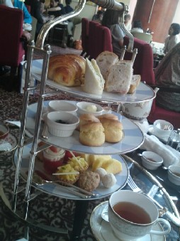 昨日バレエ公演前に、ホテルでアフタヌーンティーを楽しみました私たちの夕飯デス。所々、それは・・・・NG?? では・・・って思う部分もありますが、お堅いことは言わなければ、サンドイッチの手の込んだところ生クリームではなく、クロテッドクリームだし、プラス蜂蜜が3種類もサービスされるところお菓子の種類が豊富なところ (夏らしく、サッパリと柑橘系が多かったかな)紅茶の種類も多く、美味しく淹れてくださってるところホテルでいただくアフタヌーンティーですので、まぁ~お値段もそこそこですがゆったりとした雰囲気と、フード、お茶とも納得できる内容です。横のテーブルのおばさんたちに「あの人ら、全部食べてはるで~。」みたいな事を言われてましたが、私たち、若いもんだ~~~