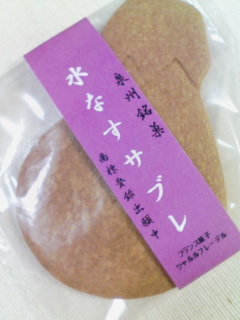 最近、『秘密のケンミンSHOW』の番組で、大阪、それも泉州地区のモノが取り上げられてます。それも同じ大阪でも、この地区独特の濃い~!!内容でして北大阪はもちろん、大阪市内の人も知らん??という魚の「がっちょ」 ・私は家では食べませんが、地元の居酒屋さんでは必ず「がっちょ」のから揚げを注文します。歌手「IKEちゃん」 ・だんじり祭りの曲を歌う人らしいのですが、私は知りませんでした。ゴメンなさい。 ですが、この歌、一度聞くと耳から離れません。独特な泉州地区で有名な「水ナス」これは大阪府民はもちろん、全国的にも有名??ですよね~。本当にみずみずしくて、美味しいのよ~。「水ナスサブレ」を見つけました店頭でおばちゃんが「水ナスサブレやって!! 水ナスの味がするんやろか~??」思わず「そんな訳ないやろ!!」と、突っ込みたくなりましたが一度お味見しとかんとな~サクサクと香ばしく、とっても美味しい~裏に書かれている原材料を見ると、アーモンド(プードル)が入っているからや~。このアーモンドの粉末が入っているか、どうかでマドレーヌなんかも、味がかなり違ってくるように思います。ところで、クッキーとサブレの違いって何ですか~