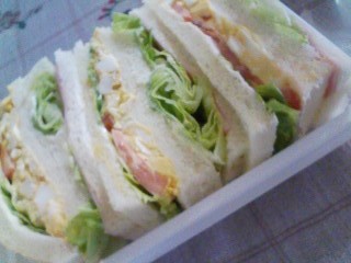 「美味しいから一度、食べてみて~。」とお勧めのサンドイッチ。今日は大当たりでトマト入り結構、大きな口でパクッといかないと、綺麗に食べられませんが、野菜や卵がたっぷりで、ボリューム満点1パック200円とは、ありがたいお値段だしミルクティーと一緒にいただくと、もう~お腹がパンパンです。また注文しちゃいそうです