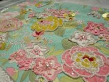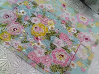 いよいよ最終段階に来ましたよ~背景部分は(ブルーのところ)、見本どおりにせず自分でアレンジしてみました。赤い糸で囲んだ部分がポーチのサイズとなりますが、刺繍を入れていくと、生地が段々と縮んできます。(先生のおっしゃるとおりだ!!)あと出来上がっているポーチに〈まつり縫い〉していけばいいのですが、生地がどうしても縮むので、刺繍を微調整しながらの作業になります。明日までに間に合うかな~??現時点で、まだ半分もまつってません。いつもギリギリ。学習能力がありませんね