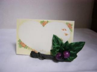 ☆ティーズマリー・フラワーアレンジメントスクール体験レッスンのお知らせ☆12月7日(水) 10:30~ (締め切り 12月1日)12月21日(水)10:30~ (締め切り 12月15日)________________________________________________________________________________________________________________________________________結婚式でゲストの方がテーブルにつくとき、まずは自分の席札を探しますよね?自分の席札が、可愛らしい手作りのスタンドに立っていたら、思わずニッコリ♪席札には手書きのメッセージを添え、スタンドごと記念に持ち帰っていただいてはいかがですか?今回は、「手作り大好きさん」用と、「ぶきっちょさん」用の2点をご紹介します♪どちらも材料費は1つ¥20前後です!☆手作り大好きさん用☆こちらは、ワイヤーで作った土台に、ワイヤー付きの造花の葉や実を飾り、最後にフローラルテープで巻き上げました。とても簡単ですが、立てたときのバランスなどを考えたり少々手間がかかります。式まで少し余裕のある方は、ぜひ作ってみてはいかがですか♪ ☆ぶきっちょさん用☆¥100ショップなどで売っている木製ばさみに、ワイヤー付きの造花の葉を巻きつけるだけです。こちらは挟めるので、席札スタンドとしてだけでなく、袋の口を閉じたり、値札に利用することも出来て、お手軽なのにとても便利ですよ♪ 材料はたったコレだけ! 実やお花を追加すればもっと華やかにも演出できます♪