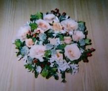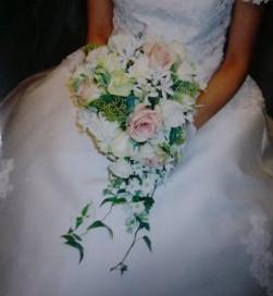 年明けにハワイの結婚式に招待されているのですが、現地でブーケを作ることになりました!海外でブーケを作ったことがないので、花の手配などちょっと不安もありますが、楽しみです♪資材など、忘れ物があったら大変ですね~。。。!!フラワーアレンジメントスクールの生徒さん達は、ご自分で作る方がとても多かったです!挙式前日に、大田市場の仲卸までご自分で仕入れに行くなんて方も!!忙しくて大変だったそうですが、とても良い記念になったそうです♪今日は生徒さんが、ご自分で作った挙式のブーケをご紹介します!花材はご本人と相談して、私の方で揃えました。製作も、ご一緒させていただきました!とても可愛らしく優しい感じに仕上がりました♪きっと、生徒さんもブログも見ていると思いますので、良かったらコメント入れて下さいね♪辛口OK?!(笑)大井町教室卒業生、Hさんの作品