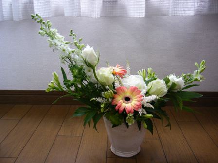 先日の生花レッスンで余った花材で久し振りに娘がアレンジをしましたレッスンの日の夜突然娘が耳を痛がり夜間救急へ翌朝39度の熱が出て、かなりヒドイ「急性化膿性中耳炎」になってしまいました耳鼻科で処置をし、今は熱も下がってスッカリ元気なのですが、しばらく安静とのこと。。。歌やダンスが大好きな娘を大人しくさせようと、お花のアレンジをさせてみました花材を全部適当な長さにカットしたものを渡し、私が家事をしている間に自由にアレンジさせました!今回も親バカながら、腕前に感心こちらはだいぶ前ですが、知り合いのフローリストのイベントで娘がアレンジしている様子どんどん成長する娘を微笑ましく思いますが、最近「早く大人になりたい♪」なんて言うようになったので寂しくも思います。。。どうかゆっくり大きくなってね先日体験レッスンにいらした方がご入会いただけることになりましたありがとうございます!!これからどうぞ、宜しくお願いいたします