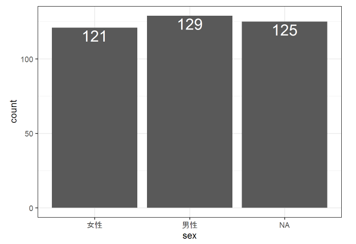 geom_text(aes(y = ..count.., label = ..count..),stat = 'count', vjust = 1.2,