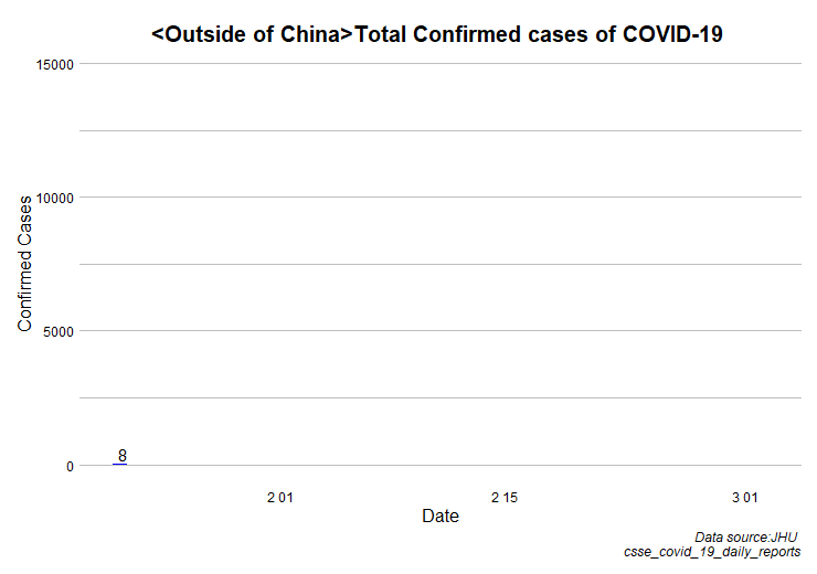 ​​ 中国本土以外での新型コロナウイルスの感染者数増加ペースが加速しています。中国本土以外での感染者の累計は1万人を超えてきました。
