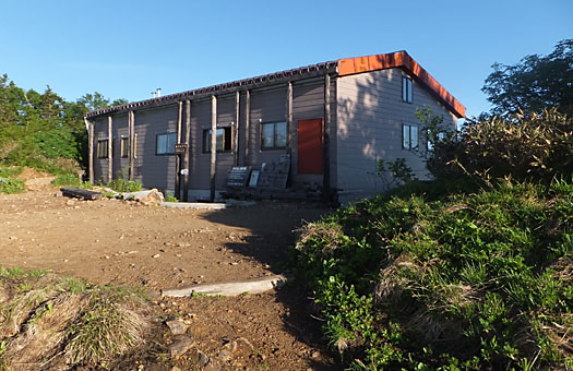 | 夕方までに残り4km余り。先を急がなくてはいけません。スバリ岳から次の赤沢岳へは250mほど下った後、150mほど登ることになります。山頂付近の岩場にはチシマギキョウ(上画像)が咲いており、こうした花に癒されながら岩場のコースを下ります。・・・と、調子が良かったのはこの辺までで、この後大変な事態に襲われてしまいました。 持病・・といってもいいかもしれませんが、右の太腿がつり始めてしまいました。こうした事態を避けるために、この日もスポーツ飲料を飲み続けていたのですが、避け切れませんでした。発症直後は休み休みで少しずつ歩を進めていたのですが、30分も過ぎた頃にはとうとう足を伸ばすことも曲げることもできなくなってしまいました。このまま動けなかったら、今夜はここでビバーク、ということになります。この時点の標高は2600mほど、雨の心配はなさそうですが、悲惨な夜になりそうな予感です。5℃程度まで気温が下がっても耐えられる装備は常時携行していますが、今回初めてこのお世話になるのか・・・、などと覚悟は具体性を帯びて来ます。 太腿のマッサージやストレッチを行っても、一向に症状が改善しないまま1時間ほど経った頃、私と同年代の夫婦のパーティが通り掛り、一目見ただけで症状を見抜いたようで、処置の方法を教えてくれました。内容は 、『つっている筋肉に繋がる筋(腱)を、痛みを感じるまで強く押し、パッと開放する。少しずつ位置をずらしながら、この処置を筋の端から端まで行う。5-6周すると症状は消える』 というものです。この人も、他の山で苦しんでいて、他の人から教わったものだそうです。教わった通り、右の脛裏の腱にこの処置を行うと、何と何と速攻で痛みが消えたではありませんか。まるで予備の足に交換したような、奇跡の回復ぶりでした。教えて下さった方にお礼を言いつつ見送って、私も何事もなかったかのように歩き始めることができました。NHKの番組で紹介していた処置(ストレッチ)より、遥かに有効な方法なので、各位もこうした症状に襲われた時には、是非お試しください。 さて、残り4kmの間には 赤沢岳 (2678m)、 鳴沢岳 (2641m)のピーク越えがあります。詳細は省きますが歩行は順調に進み、宿泊予定の新越山荘(下画像=翌朝撮影)には5:40に到着できました。既に小屋の夕食は終っており、代わりにラーメンを用意して貰って、腹を満たしました。10年ほど山野徘徊を続けて来て、今回初めて遭難寸前の危機に瀕してしまいました。「足がつる」という悩みを持つ人は少なくないようで、小屋でこの話をすると大勢の人に喜ばれました。 |