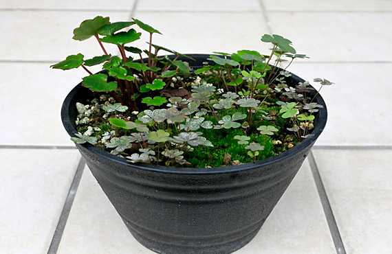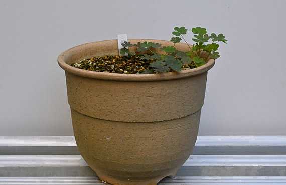 今回紹介するのはニリンソウ(二輪草)です。この数年、開花する花の8割ほどが1輪で咲いています。この比率を逆転させたいのですが、「どうすれば・・・」という段階でポーズ状態に陥っているのが実状です。 そこで今回は少数ですが塊根を分植して栽培環境を変えてみることにしました。用意したポットは4号と2.5号の陶鉢です。4号には3株、2.5号には2株を植え付けました。用土は自然界の環境に近付けるということで、常用の園芸用土に細断した腐葉土を混ぜています。こちらが分植したポットと、元の大型ポットの集合写真です。分植した4号ポットは従来通り屋外に、2.5号は室内に収容して加温促成するつもりです。