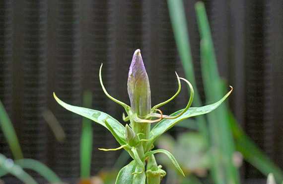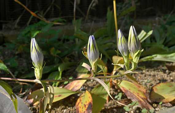 リンドウが開花しました。昨年と比べて3日遅れの開花です。・・・とは言いながらこの品種、他とはかなり変わった咲き方をする傾向があり、ひょっとするとこの開花日に誤認があるかもしれません。 多くの山野草は、明るくなる時間には花弁を開いており、花が散るまでその形状を保持します。それに対してこの品は、日差しが差し込み、気温がそこそこ上昇するまで花弁を開くことはありません。日差しがなくなったり、気温が下がると花弁を閉じてしまいます。その閉じ方も実に几帳面で、開花前のの姿、丁寧に捩りを利かした紡錘形に形を整えます。当然曇りや雨の日や、晴れても気温が上がらない日には花弁は閉じたまま1日を過ごすことになります。そして花が寿命を迎えた時は、この閉じたままの姿で幕を降ろすことになります。万事に自堕落なワタクシとしては、羨望とは逆に妬みの対象にもなり得る振舞いを見せ付けてくれます。