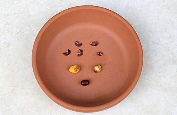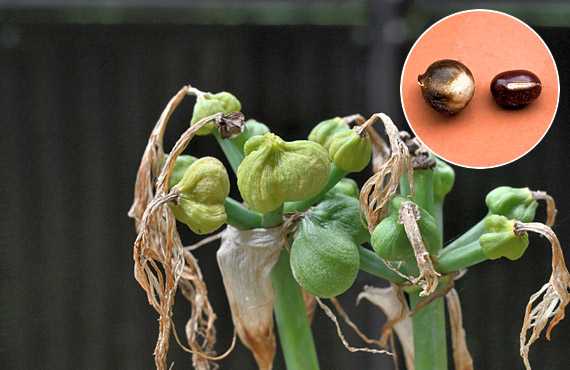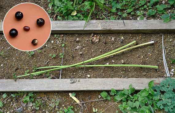 4本残していた、黄花リコリス「山の根ゴールド」の花軸の内、1本が黄変し始めました(上画像中央の個体)。株元は既に黄色から黄土色に変化しており、実(種子)はこれ以上の成熟はなさそう・・・ということで、これを採取して種子を取り出してみました。 円内が採取した種子と比較用の小豆粒です。本来実を結ばないリコリスだけに、サイズがこれでいいかどうか見当が尽きませんが、色艶は成熟している様に見えます。残る3本の花軸で成長中のものと合わせて種蒔きして、推移を見ようと考えています。仮に発芽したりすれば、大珍事なんでしょうけどね~。