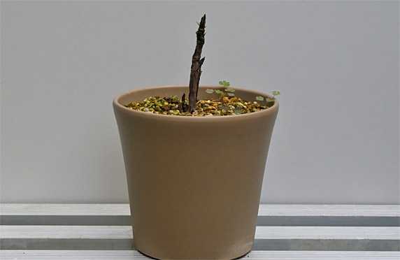 10年を超えて花を咲かせていない青花キクザキイチゲですが、ショック療法として小型ポットに移してみることにしました。上画像は植え替えを終えた様子で、左の4号鉢には3個体、右の3.5号鉢には2個体を植え付けています。4号鉢は厳寒期も屋外で過ごさせ、3.5号鉢は屋内の最低気温15℃程のぬる~い環境に置くつもりです。こうした環境変化で春の迎え方に差が出るか確認するのが目的です。 因みに、キクザキイチゲの塊根はこんな形をしています。大きさは太さ4~5mm、長さ4cmほどで、このサイズは大型に属します。通常は長さ2~4cmといったところで、小さくても花を咲かせる能力は持ち合わせている筈ですが、なぜ我が家では咲かないのか、疑問だらけ、不満てんこ盛りの手強い相手ではあります。