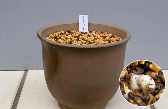 今回取り取り上げるのはカキランです。暑さの盛りに地上部が枯れてしまった・・・という事情から、先ずは生死を判定しなくてはいけません。表土を2cmほど剥ぎ取ったところで目標物に到達しました。冬芽は小さいながら2芽確認できました。生死判定はOKです。・・・ということで、当初の案としてはここまでで作業を終えるつもりでした。 振り返ってみると、ここ数年作落ちが続いており、この状態の改善のためには、栽培の環境を変えてみる必要がありそうです。栽培指南サイトによっては、用土に腐葉土を混用するというサイトもあり、今回はこれを真似てみることにしました。で、一旦、バルブを完全に掘り上げ、鹿沼土・赤玉土の配合用土2に対して、腐葉土1を混ぜた用土で植付けました。表土付近1~1.5cmは常用の用土で化粧して一丁上がりとしました。この品の来年の動向を見て、他にも展開するかどうか判定するつもりです。
