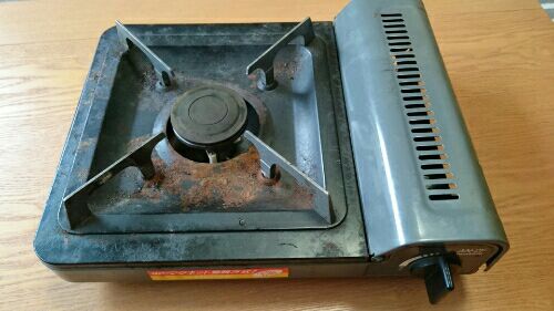 仕事帰りスーパーに行くと入口のワゴンに鎮座しておりました。 早速カセットガスと共にお買い上げ。 もう何年も使っていなかった 錆びだらけの、製造1993年だって! こんなに使ってたらガス漏れ起こすよね 錆びだらけのカセットガス、4本 ガス抜きしなくっちゃ! 新品はいいですね 経年劣化、10年ですって!
