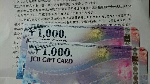 「県生活支援事業 」 の実施 低所得者なので頂きました。 以前、市のほうに 「臨時福祉給付金」の申請をした人が 対象になったようです。