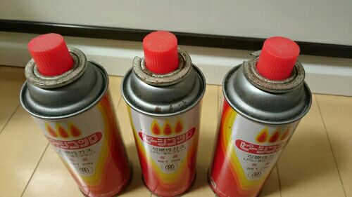 カセットガス、4本 どれも錆びがきてる 今一番の錆びだらけのを カセットコンロに挿して 火をつけてガス抜き、恐々と様子見です。 外で逆さにしてガス抜きしてみましたが 臭いがきついし怖くて出来なかった! 未使用のは7,8分で抜けるそうですが。 1本ガス抜き完了! 残り三本は日々使っていきたいと思います。
